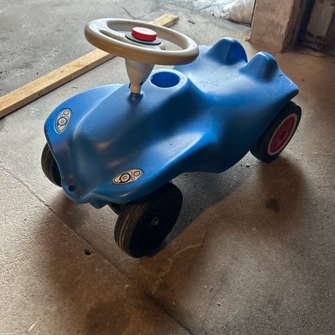 Ola Bil - lekebil laget i tre med rødt og svart fargevalg. Den har et ratt for styring og er designet for barn som lekeobjekt. Den er egnet for utendørs bruk under tilsyn.