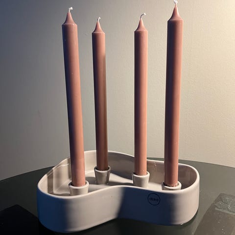 Dbkd lysestaker laget i keramikk med grå farge. Passer til bruk som dekorative lysestaker i hjemmet.