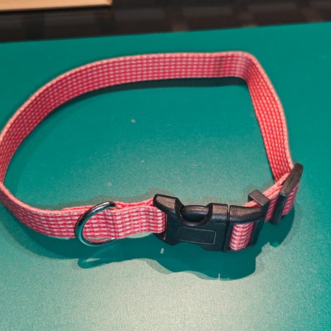 Halsbåndet er lite brukt og i god stand. Passer fint til liten hund eller valp som skal ha et pyntet, men samtidig funksjonelt halsbånd.