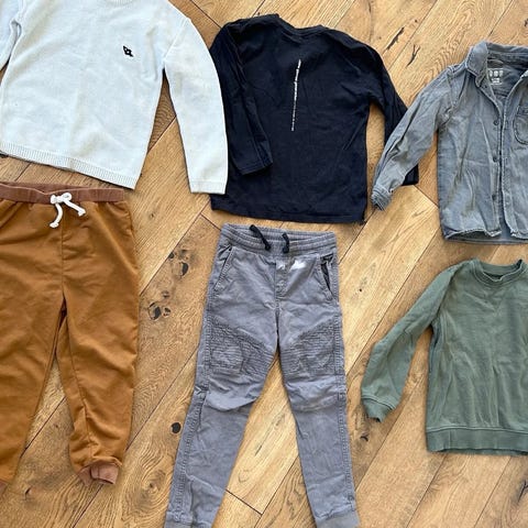 Inneholder 3 joggebukser, 1 college genser og 1 Stormberg regnbukse (lite brukt). Mye bruk igjen