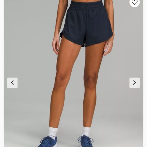 Lululemon speed up løpeshorts for kvinner i størrelse S. Shortsen har en grønn farge med mønster og er designet for løping. Den har en bred linning og lommer for oppbevaring av små gjenstander.