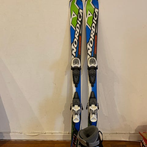Alpinski, 110 cm, alpinstøvler, str 32(205), litt små, så ca skostr, 30