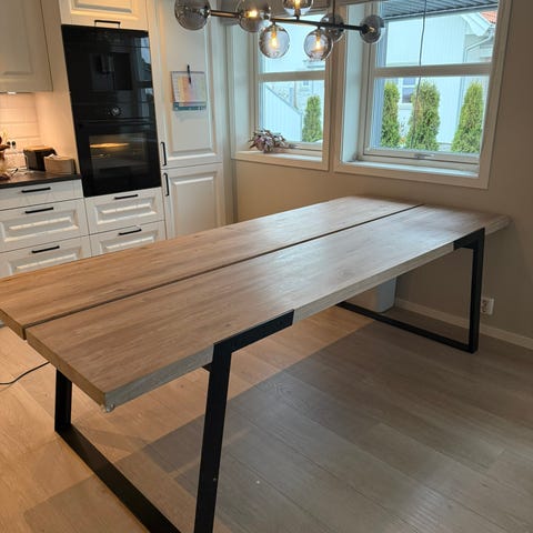 Spisebord selges rimelig pga enkelte bruksmerker. Ellers i god stand. Kan forlenges med inkludert plate til 320 cm. Må hentes. Kjøpt nytt for 25.000kr.