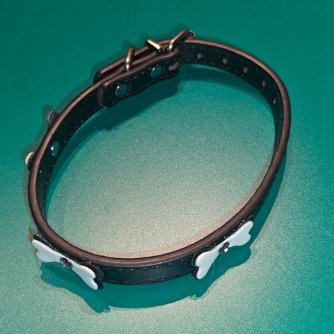 Lite brukt og i god stand. Passer fint til liten hund som skal ha et pyntet halsbånd til hverdags eller spesielle anledninger.