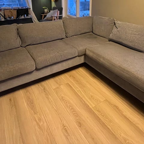IKEA hjørnesofa med sjeselong lys grågrønn tekstil