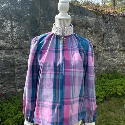 🌸Fin skreddersydd skjorte str M-L i blomstrete bomullsstoff. Sydd i dyre- og røykfritt hjem. Selges med tungt hjerte da ermene ble for korte til meg. Nylig ferdigsydd, kun prøvd noen minutter. Siljeskjerf og sølje følger ikke med.🌸