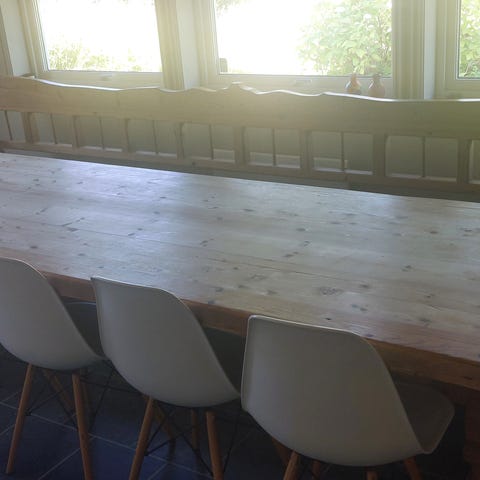 Bordet er uttrekkbart med to ileggsplater (50cm hver) og kan enkelt tilpasses både hverdag og fest.
