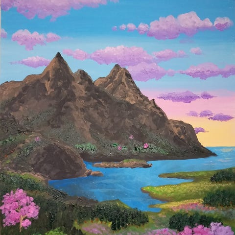 Oljemaleri med norsk natur, signert Øyvind Heggtveit. Rammemål: 56,5 x 78 cm, motiv 47 x 69 cm. Bildet må strammes litt i hjørna opp,.Fin ramme som stort sett er i grei stand, men nokre små nugg her og der. Bør hentast.