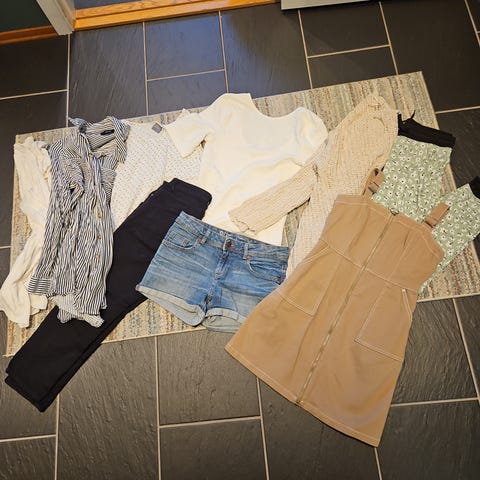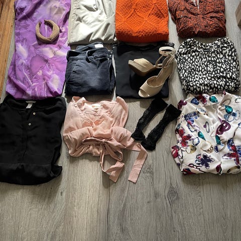 Selger en fin klespakke bestående av flere plagg og tilbehør, pent brukt og noe helt nytt med lapp. Alt selges samlet.