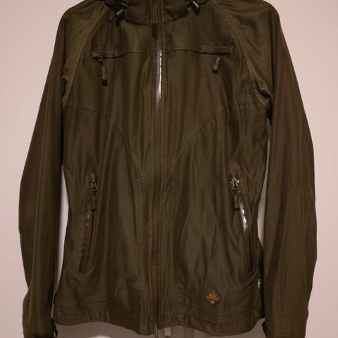 Sweedteam anorakk jakke i olivengrønn farge. Jakken har hette og glidelåsdetaljer. Materialet og størrelsen er ikke oppgitt.
