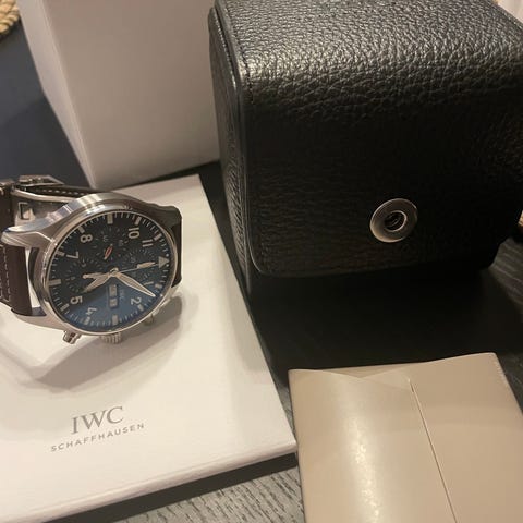 Klokken går dessverre ikke for øyeblikket og trenger service/overhaling (typisk hver 5–8 år på disse). Dette er hovedårsaken til den lave prisen – normal bruktverdi for en Mark XVI i god stand (spesielt sølvskive-varianten som er litt sjeldnere) ligger på 35.000–40.000 kr eller mer med full sett og nylig service. Her får du en super mulighet til å kjøpe en premium IWC til rabattert pris!