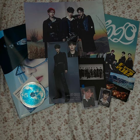 Kommer med fotokort på bilde, plakater og andre små ting som følger med.