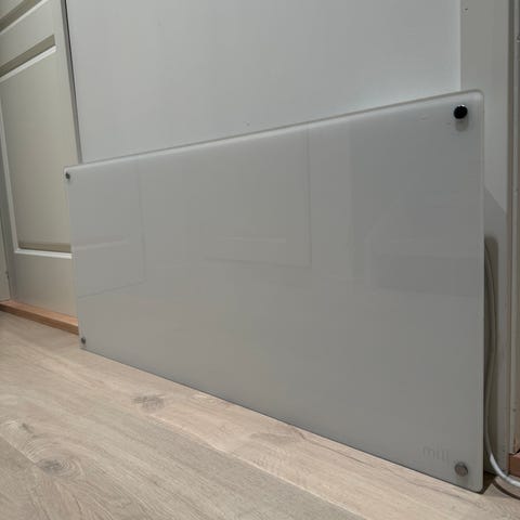 Mill panelovn med termostat og app-styring kjøpt for å ha som midlertidig oppvarming i påvente av oppussing. Kjempegod effekt med 1000W.