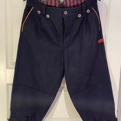Nikkersen er mørk blå. Kan nok brukast av begge kjønn.