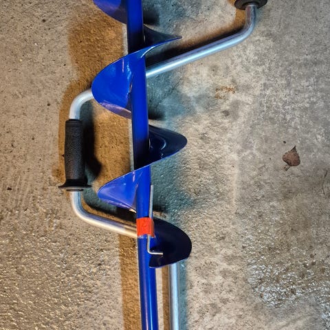 Isborr Mora med dobbel skjær. Egnet for boring i is til fisking eller andre aktiviteter som krever hull i isen. Kniven er som ny, 115mm. men rust på isbor.