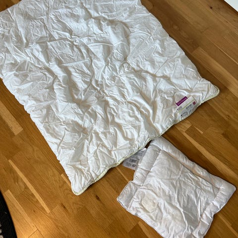 Selger pent brukt sommerdyne i dun fra Dun of Norway, størrelse 100x140 cm — perfekt til barne-/junior seng.