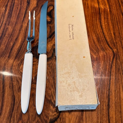 Dette er et Vera Lucino tranchersett i sølvplett, bestående av knivofferet gaffel.