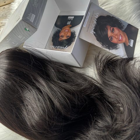 Ny og ubrukt parykk av ekte hår med alt av tilbehør