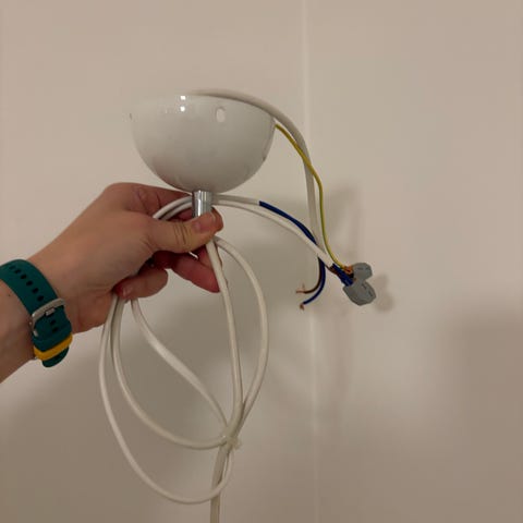 Den ene har en fuktskade på treverket over lampeskjermene, kan antakelig fikses med litt sandpapir og olje/lakk.