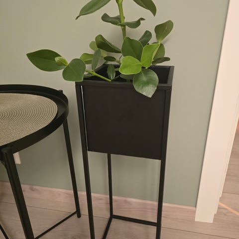 Høy pidestall på 87 cm med stor plass til potte planter. 250 kr.