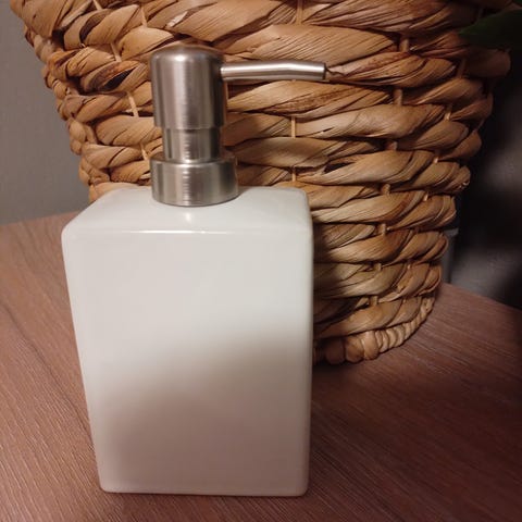 To svarte såpedispensere fra Kid selges samlet. Matt svart. 7,6 cm i diameter og 20,3 cm høy. Nypris 180 kr per