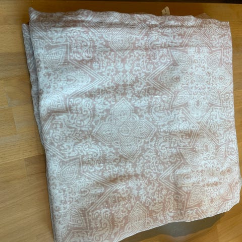 Pent brukte gardiner fra Kid selges. Tykke gardiner med «ull»-look og lysdempende egenskaper. To lengder.