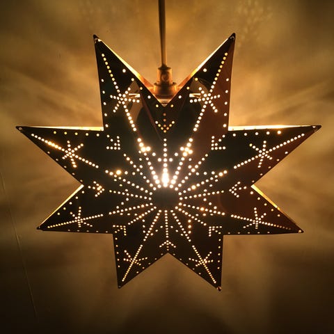 Nydelig adventstjerne i recin. Mener den er blitt kjøpt på europris en gang. Selve bryteren er løs og har litt dårlig kontakt. Ingen problem å fikse. Jeg har brukt den i år som den var.