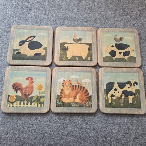 Sett med 8 stk glassunderlag/glassbrikker/coasters med utrolig fint botanisk trykk (Lively Floral) fra Rifle Paper Co. Disse har jeg bare dekket på med, men ikke endt med å bruke, da jeg syntes de var for fine :) Kommer i en fin liten eske. Laget av tykk pappmasse.