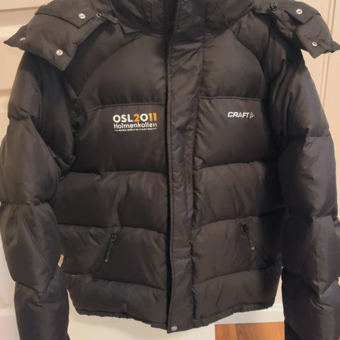 Craft jakke i størrelse M, svart farge og laget av dun og fjær. Jakken er designet for menn og egnet for utendørs bruk. Den ble for liten for meg selges derfor billig.