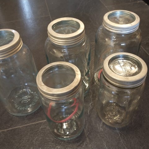 Selger 4 stk. pen brukte uskadede Norges glass i 2 størrelser med metall skrulokk.