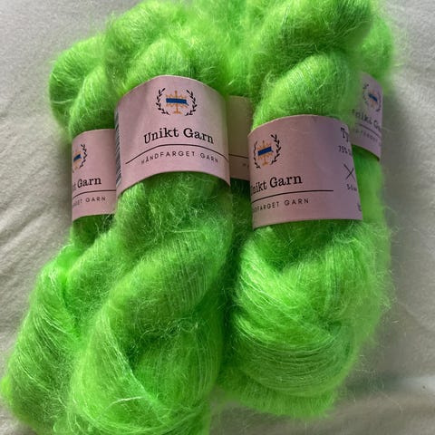 Unikt garb tynn ren merinoull i fargen «sure strenger» 100gr: 220kr -SOLGT