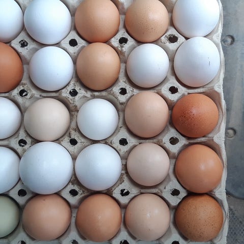 Selger rugeegg fra raser som legger daglig i mange flotte farger!