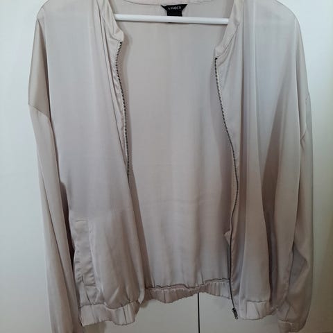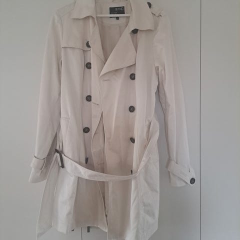 Lett og stilren damejakke i lys beige farge. Passer perfekt til vår og høst. Jakken har glidelås og knapper, justerbar midje med snøring som gir fin passform, samt praktiske lommer. Klassisk og tidløst design som passer til både hverdag og jobb.