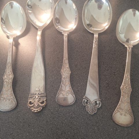 Tre deler av et bestikksett i sølvplett, trenger en rens