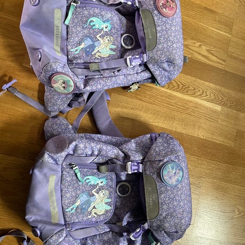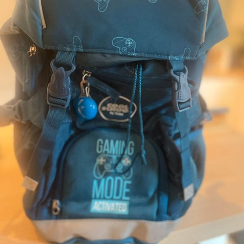 Gymbag kan festes på sekken. Regntrekk i topplokket