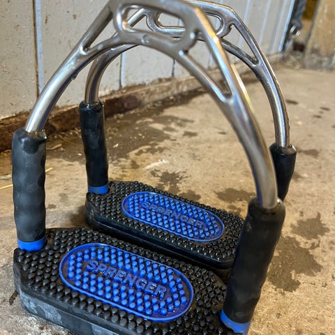 Pent brukt Sprenger Bow Balance stigbøyler i svart og sølv.