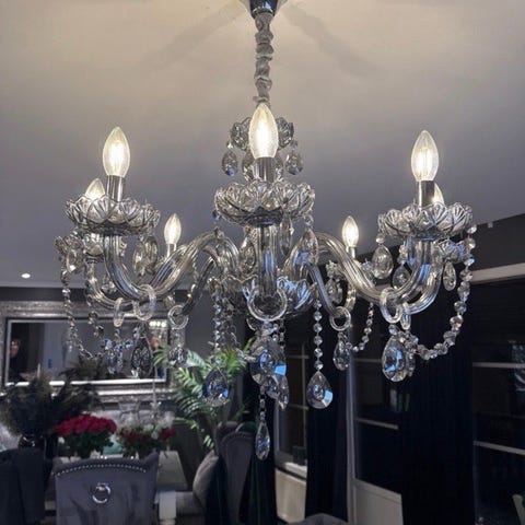 Lysekrone «perle» Ø120 brukt i styling og showroom selges til redusert pris. Nypris 16.400 kr
