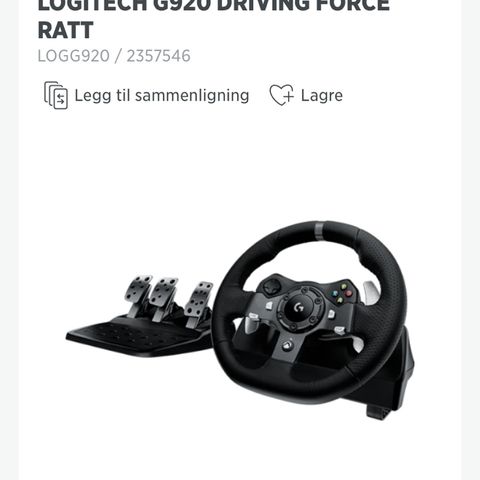 Logitech Ratt 920 med pedaler og gear spake