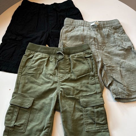 Klespakke som inneholder 3 shorts, 2 T-skjorter og en skjorte (liten flekk).