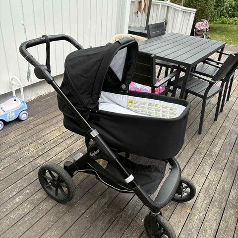 Quinny XL Freestyle Comfort barnevogn med svart farge. Barnevognen har store hjul og justerbart håndtak. Egnet for barn, designet for komfort og funksjonalitet.