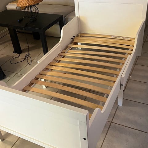 Veldig lite brukt madrass følger med. Mål 140×70cm.