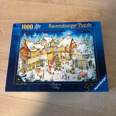 Ravensburger The Christmas Library puslespill med 1000 brikker. Puslet en gang