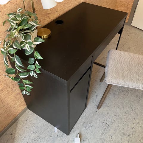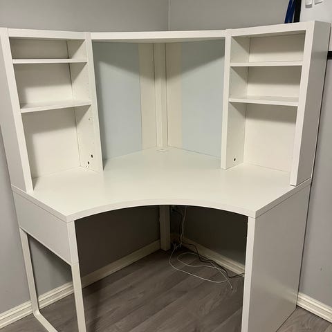 Selger et fint skrivebord fra IKEA. Kjøpt nytt av oss i august, men har dessverre fått en del skader på seg (se bilder). Skadene har ingenting å si for bruken.