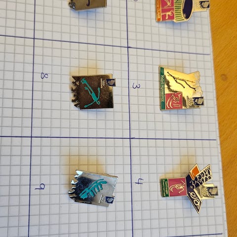 Sølvfarget merke med birkebeiner og feilfri emalje fra norges skiforbund