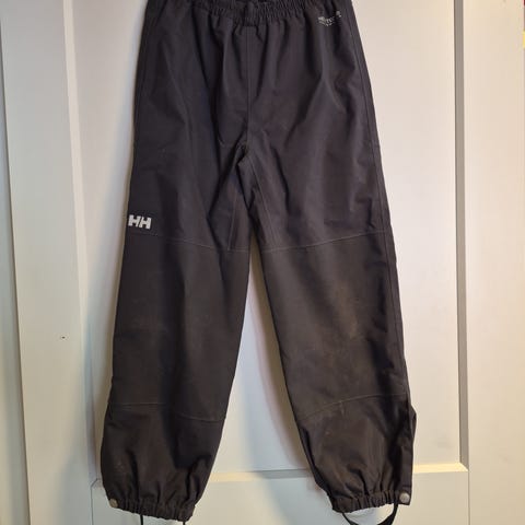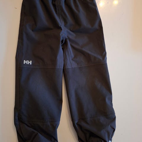 Helly Hansen bukse i størrelse 104 selges. Litt slitasje på knærne, ellers pent brukt. Er ikke fôret. Farge svart, ser litt bleket ut på bildene, men dette stemmer ikke
