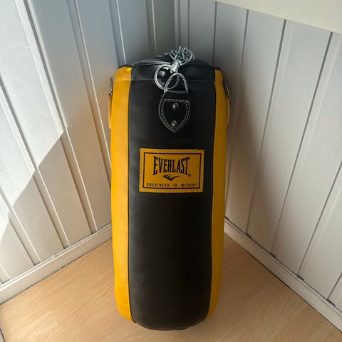 Everlast boxsekk i svart og gul farge. Egnet for trening og kampsport. Største 300 kr og minste 250 kr. Begge 500 kr