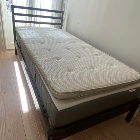 Jeg har kjøpt en ekstra overmadrass over overmadrassen da jeg synes den var hakket for hard. Denne kan du få med hvis du vil. Er vasket på 60 grader, men har noen flekker som ikke går bort.