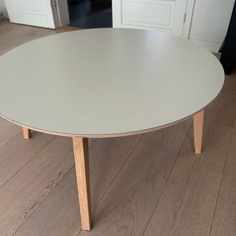Rundt sort salongbord, 108 cm i diameter.
