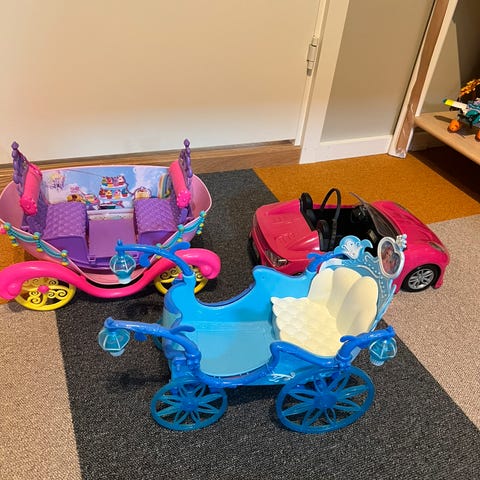 Barbie bil, dukker, klær og annet utstyr selges samlet
