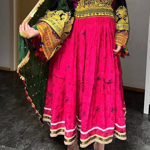 Kurdisk kjole pent brukt, selges billig pga den revet stedet se på bildet og den kommer helt nede på baksiden som er usynlig etter( kortakk) på.
